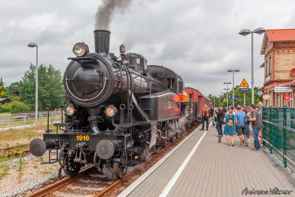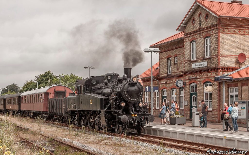 Turen starter i Kappeln, hvor der er påstigning på Kappeln Station. Allerede når du stiger ombord, bliver du ramt af nostalgien lyden fra ventilerne og togførerens fløjt, når det er tid til afgang. Nu er du på vej ud i det smukke Slesvig-Holstein, til områder som kun banens passagerer får at se. Den første station på turen er Scheggerott, og efter 10 minutters pause går turen til Wagersrott. Lige inden toget når Sønder Brarup skal der siftes spor – det foregår selvfølgelig som for 90 år siden med håndkraft. Herefter fortsætter toget til perronen, hvor der er afstigning. Ventetiden i Sønder Brarup afhænger af køreplanen. Under alle omstændigheder er der god tid til at stige af og se den smukke stationsbygning i Sønder Brarup, som er fra 1904. Er der lang ventetid, kan I besøge Torsbjerg Mose, som er kendt for de mange arkæologiske fund, som blev opdaget i 1800-tallet. Det tager ca. 5 minutter at gå fra stationen til mosen.