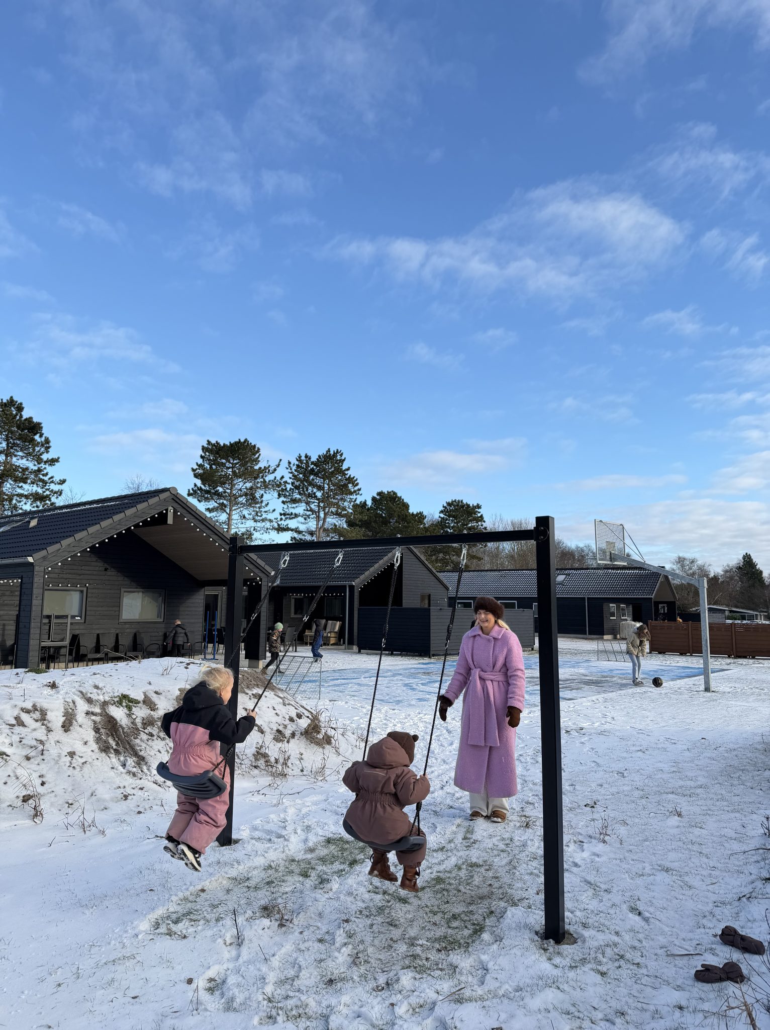 Dage, hvor tiden flyder langsomt. Hvor små fødder løber mod poolen, og dampen fra kaffen varme vinterkolde fingre. Ingen tidsplan, intet stramt program – kun grin, samvær og ro i kroppen.