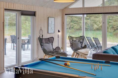 Også indendørs er tænkt på aktivitet og sjov, så selv i slud og regnvejr er der en masse ting at lave for hele familien. Børn og barnlige sjæle vil elske sommerhusets store og rummelige aktivitetsrum, hvor I både finder billard, bordtennis, bordfodbold, dart og PlayStation 4. Sommerhuset har også sin egen bar med køleskab, så der kan serveres kolde drikke til de spillende eller tilskuerne.