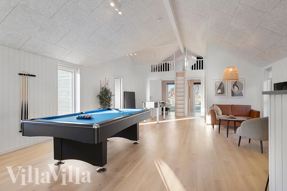 Nyd ferien i den indendørs pool med rutsjebane, hvor børnene kan lege, mens de voksne slapper af i spaen eller tager en tur i saunaen. Boligens aktivitetsrum byder på timevis af underholdning med billard, bordtennis, dart og bordfodbold, samt en hyggelig bar, hvor I kan nyde en drink og hinandens selskab.
