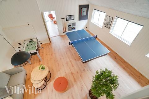 Feriehuset er udstyret med et separat aktivitetsrum, hvor der er god plads til leg og fysisk udfoldelse. Her kan I både spille billard, bordtennis, dart og bordfodbold. Derudover har aktivitetsrummet en Play Station 4 og en bar med barstole og køleskab i hjørnet.