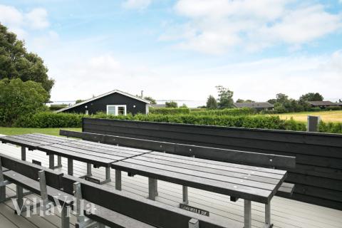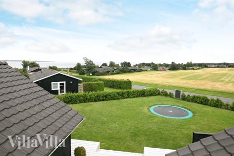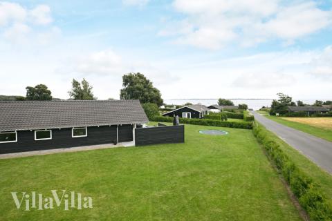 På sommerhusets dejlige terrasse kan solen og den smukke havudsigt nydes i havemøblerne, mens der kan grilles en god bøf. Sommerhusets mindste gæster kan leje i husets sandkasse, hoppe på trampolin eller tage en gyngetur.