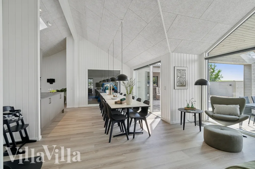 Køkkenet er fuldt udstyret med alt det nødvendige for at tilberede lækre måltider, lad den indre kok slå sig løs og vær kreativ. I midten af huset finder I det lange spisebord, med plads til alle gæster, her kan måltidet nydes og spilleaftenerne finde sted.