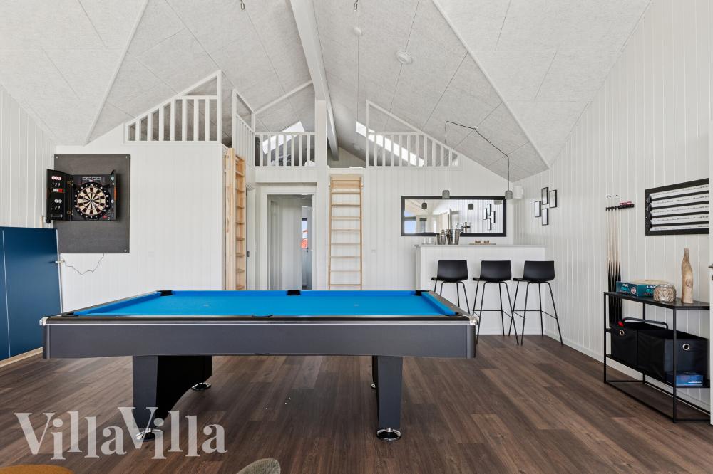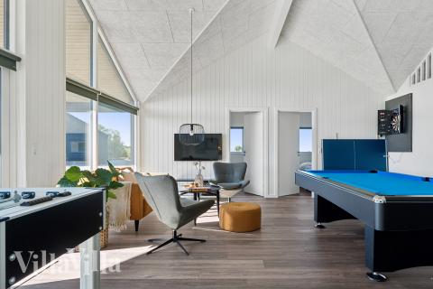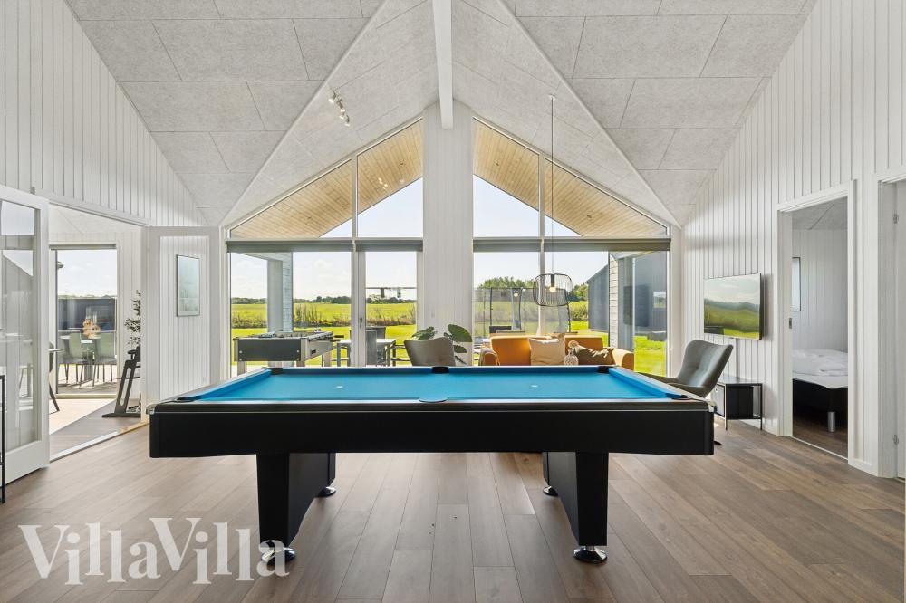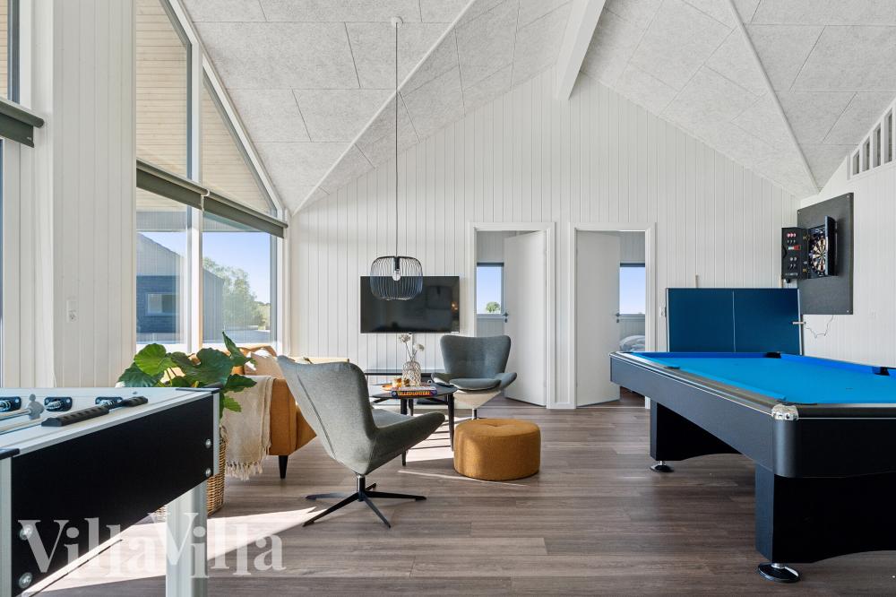 Aktivitetsrummet inviterer til sjov med bordfodbold, bordtennis, dart og billard. Der er også et hyggeligt sofahjørne med TV til afslapning. Poolområdet er et hit med modstrømsanlæg og vandrutsjebane, hvor både børn og voksne kan boltre sig. Udenfor venter spa og sauna – perfekt til afslapning under åben himmel.