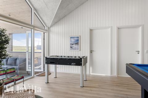 I aktivitetsrummet fortsætter hyggen. Her venter billard, bordtennis, bordfodbold og dart samt et sofaområde og en indbygget bar, hvor aftenerne kan blive både lange og festlige. Perfekt til små turneringer eller en rolig stund mellem aktiviteterne.