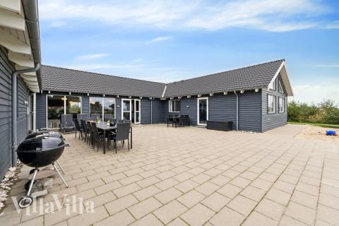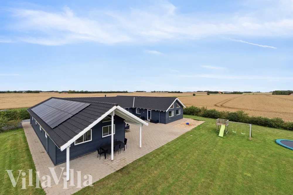 På sommerhusets delvist overdækkede terrasse kan I slappe af og nyde det danske solskinsvejr. Her finder I havemøbler til alle gæster og grills. I haven er der gynge, sandkasse og trampolin til børnene.