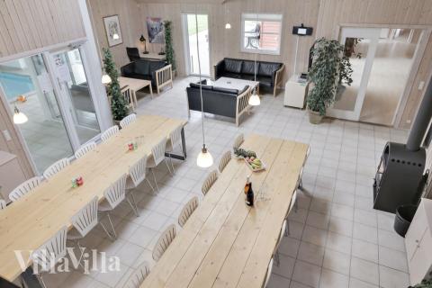 Poolhusets eget "badeland" er et sikkert hit til alle vandhunde der kan boltre sig i den 28 m2 store pool med rutsjebane, 4-6 personers spabad og sauna.