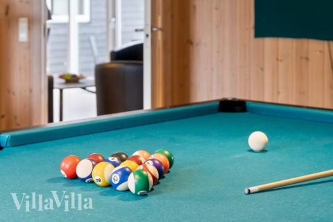 I det andet er husets "slyngelstue" indrettet med billard, dart og bar med køleskab.