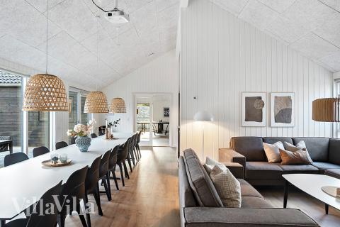 Med 8 soveværelser, en hems med plads til 4 og hele 4 badeværelser er der god plads til alle. Huset er indrettet med et stort opholdsrum, hvor det store XL-køkken med 2 ovne, 2 opvaskemaskiner og 2 køleskabe, spiseafdeling og stue smelter sammen. Det lange spisebord har plads til hele gruppen, mens nogle laver mad i det veludstyrede køkken, og andre samles til spil eller snak i stuen.