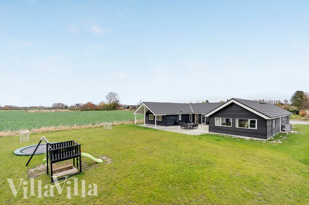 Udendørs er sandkasse, trampolin og gynge med legetårn til de yngste gæster.