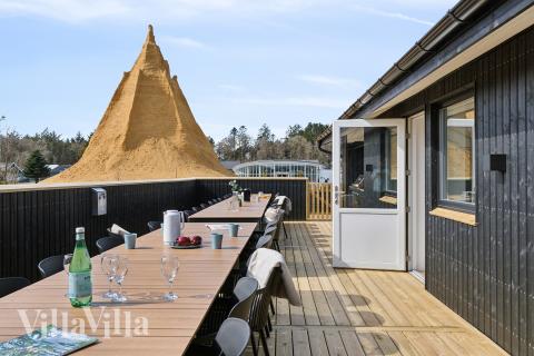 På husets nederste etage finder I et væld af muligheder for underholdning og sjov. Den store indendørs pool er ideel til afslapning og leg, mens aktivitetsrummet indbyder til konkurrence og samvær. Her kan I dyste i billard, bordtennis, dart og bordfodbold eller udfordre jer selv på PlayStation 5. Fra aktivitetsrummet er der direkte adgang til en overdækket terrasse, der er indrettet med et hyggeligt loungeområde. Her kan I slappe af, nyde den friske luft og lade dagens oplevelser synke ind.