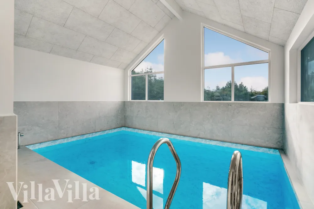 Et af sommerhusets absolutte højdepunkter er poolafdelingen, hvor store vinduespartier sørger for et fantastisk lysindfald. Tag en dukkert i poolen eller slap af i det udendørs spabad på terrassen, mens I nyder den friske havluft. Efter en tur i havet kan I skylle saltvandet af under udebruseren og nyde aftenerne ved grillen under de lune terrassevarmere. Haven giver også mulighed for udendørs aktiviteter, hvor I kan spille både fodbold og basketball sammen med familie og venner.