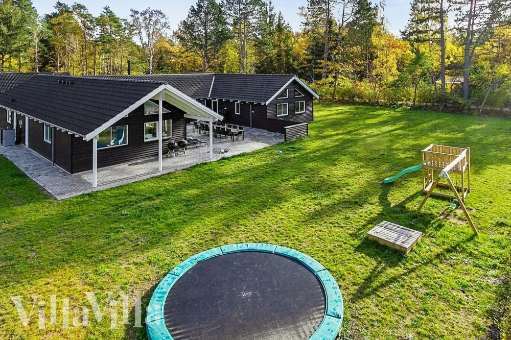 På den delvist overdækkede terrasse kan I grille og nyde den danske sommer. Terrassen vender mod vest og har derfor både aftensolen og sol i løbet af dagen, hvor solen står højt på himlen. Her er desuden en nedgravet trampolin, gynge og sandkasse til de yngste gæster. I haven kan der spilles bold og tumles i sommersolen.