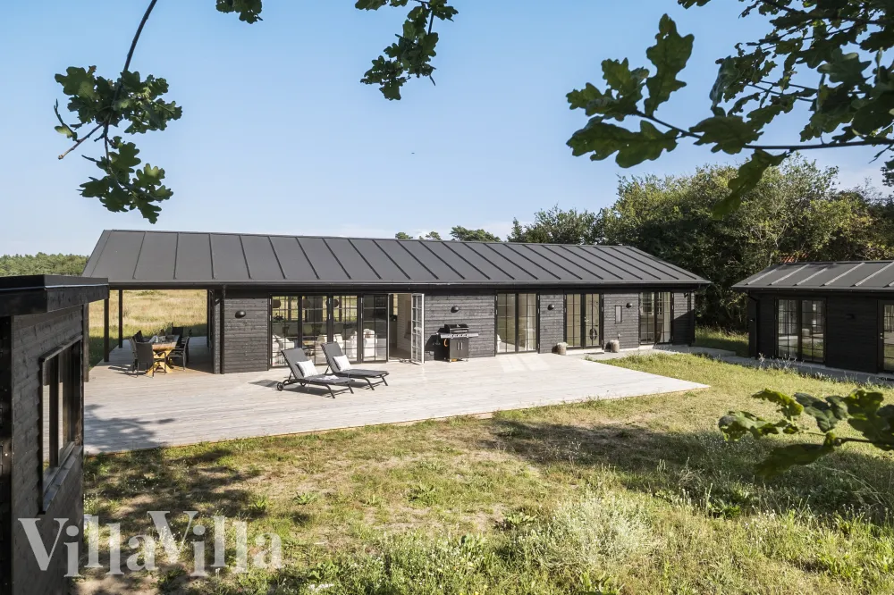 Dette rummelige og moderne sommerhus er skabt til nærvær, samvær og gode oplevelser. Her kan I nyde en ferie, hvor afslapning kan være i højsædet. De store gulv-til-loft-vinduer lukker lyset ind og forbinder jer med naturen udenfor, mens de lyse farver og kvalitetsmaterialer skaber en indbydende og afslappet atmosfære. Her kan I samles om madlavningen i det veludstyrede køkken, nyde lange middage ved spisebordet og slappe af i alkoven med en god bog eller et brætspil. I kan starte dagen med kaffe på terrassen, mens børnene leger i haven, og når aftenen falder på, kan I grille og nyde de lange sommeraftener sammen.