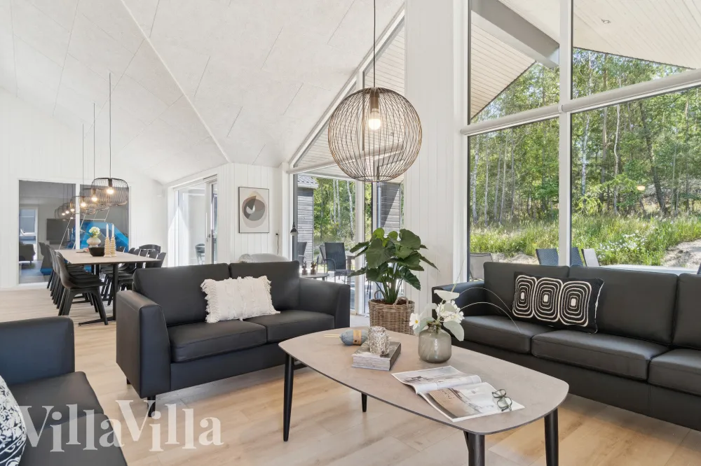 Husets hjerte er det store fællesrum, hvor I kan samles omkring det lange spisebord til hyggelige måltider, der kan nydes i lyset fra det åbne køkken. Efter middagen kan I synke ned i de bløde sofaer og tage en afslappende stund sammen.