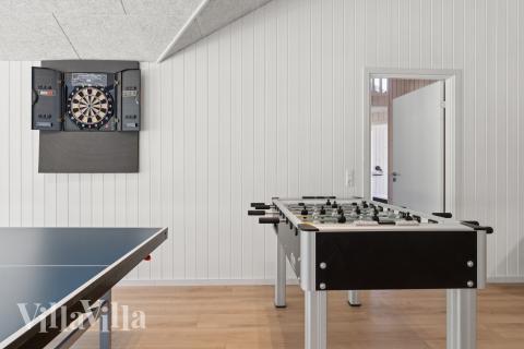 Når I trænger til lidt underholdning, kan I trække jer tilbage til husets aktivitetsrum – et sandt centrum for sjov og konkurrence. Her kan I dyste i bordtennis, billard, bordfodbold eller dart, mens andre slapper af i sofaafdelingen med tv eller nyder en drink fra den private bar. Dette rum skaber en fantastisk atmosfære for både børn og voksne, der ønsker at være sammen på en sjov og aktiv måde.