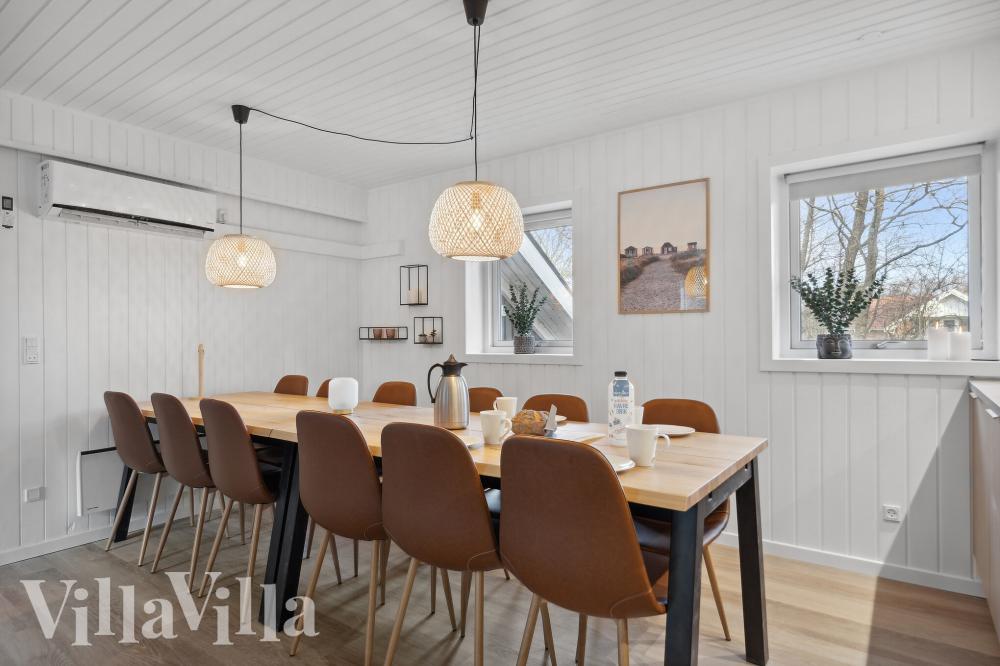 Velkommen til dette skønne sommerhus i Fjellerup, hvor I kan nyde havkig, privat wellness og masser af plads til hele familien. Med blot 100 meter til stranden er rammerne sat for en ferie, hvor I kan kombinere afslapning, aktiviteter og uforglemmelige stunder tæt ved havet. • Havkig • Overdækning med bar og lounge • Indendørs pool og udendørs wellness Sommerhuset er indrettet til både familier og vennegrupper, der ønsker høj komfort og gode rammer for samvær. I hovedhuset finder I... Læs mere