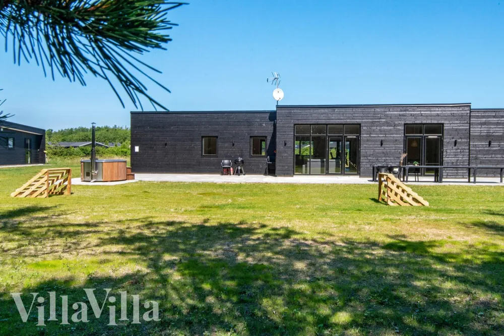 Udendørs venter en stor have med fodboldmål, der indbyder til leg og boldspil, mens de voksne kan slappe af i havemøblerne eller tænde op i grillen og nyde lange, lyse aftener. Der er naturligvis også lader til elbil, så praktikken er på plads under opholdet.