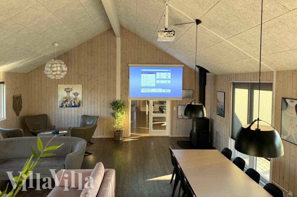 Dette sommerhus har et lege- og aktivitetsrum adskilt fra køkkenalrummet, hvor I kan spille bordtennis, billard, dart, bordfodbold og Play Station4. Feriehusets helt egen bar med køleskab ligger også placeret i aktivitetsrummet. Selv på kolde dage er en dukkert muligt i dette sommerhus. Her har I nemlig en 23 m2 stor swimmingpool med vandrutsjebane, modstrømsanlæg og romersk trappe, så den er nem at komme i. I poolrummet finder I også et lækkert spabad og varm sauna.
