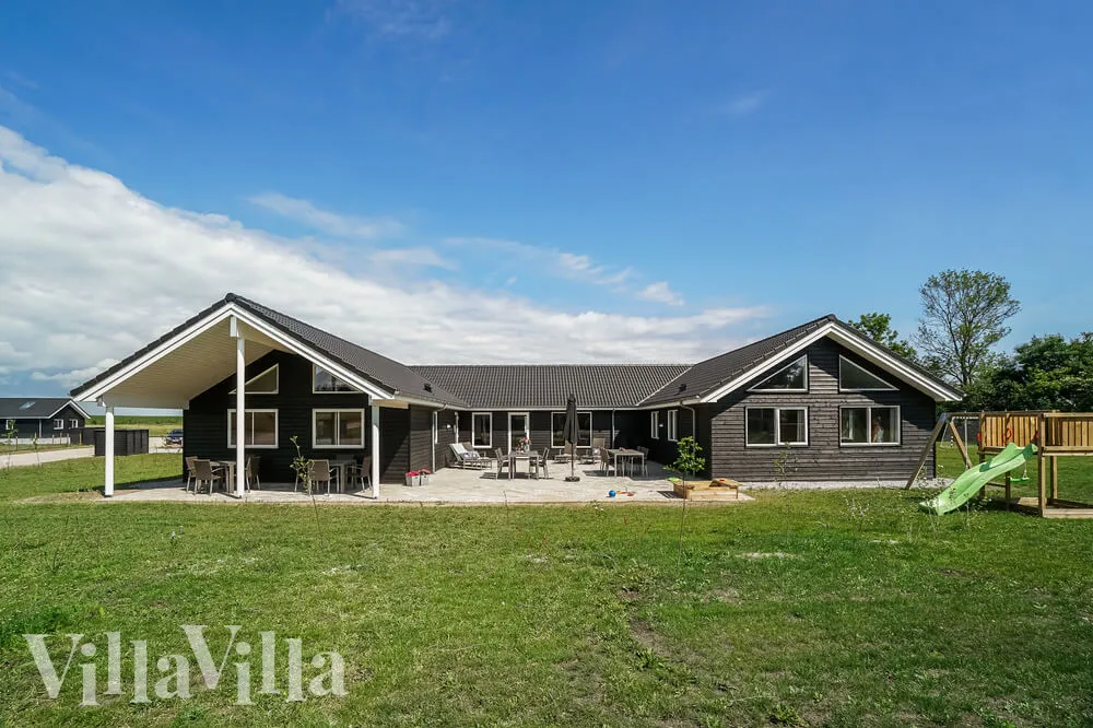 Dette store sommerhus har plads til 20 personer og er fyldt med aktiviteter, som indbyder til mange timers sjov og leg. Uanset årstiden er I sikret en svømmetur i den 20 m2 store indendørs pool med vandrutsjebane. Med den romerske trappe er det nemt for alle at komme i poolen. I poolafdelingen finder I også et stort boblebad og en lækker sauna.