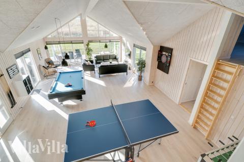 Dette sommerhus har plads til 26 personer og indbyder til mange timers sjov og leg. Sommerhuset er nemlig udstyret med mange forskellige aktiviteter i et separat ”legerum”. Her finder I både bordtennis, billard og bordfodbold. I kan også tage et slag dart eller spille Play Station 4.