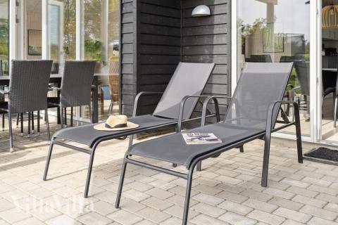 Nej. Som standard er der ingen parasol eller havehynder i vores huse. Mange huse har en delvis overdækket terrasse.