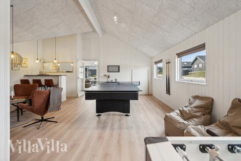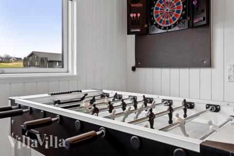 Aktivitetsrummet, der er forbundet med køkkenalrummet, byder på masser af sjov. Der er både billard, bordtennis, bordfodbold og dart, samt en bar, hvor I kan nyde en forfriskning, mens I konkurrerer i de mange spil. Derudover kan I også slappe af i loungemøblerne i aktivitetsrummet, måske med en film, hvilket giver en perfekt balance mellem aktivitet og afslapning.