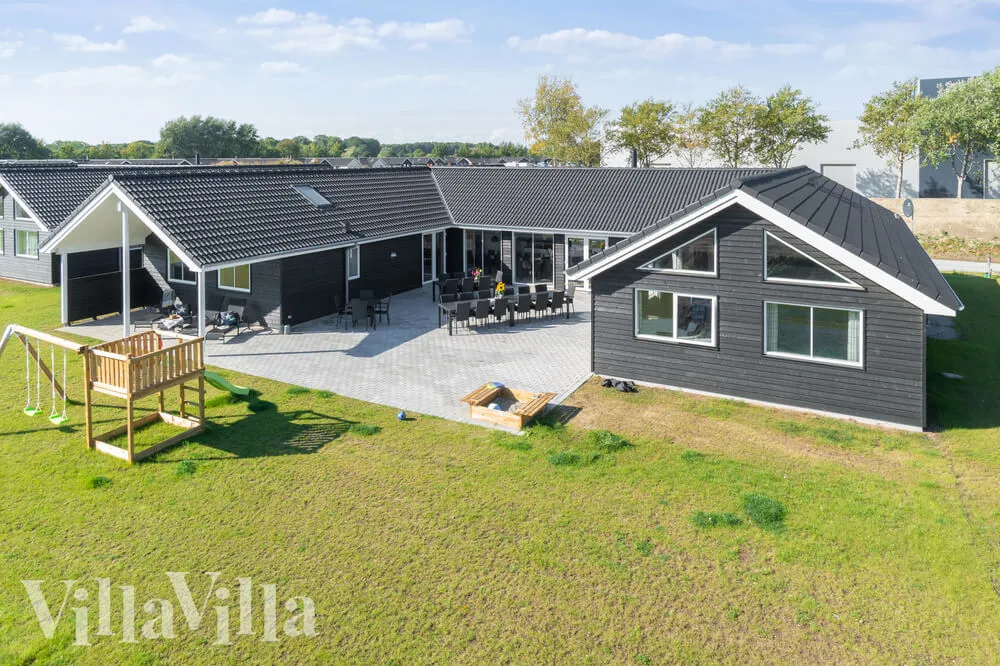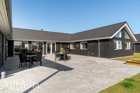 Fra køkkenalrummet er der udgang til terrassen, hvor der både er havemøbler og grill. I nærheden af sommerhuset finder I desuden en legeplads til børnene.
