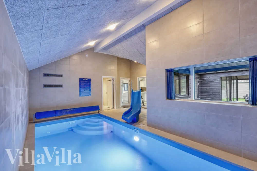 Huset har sin egen poolafdeling med vandrutsjebane, hvor både børn og voksne kan nyde sjove øjeblikke sammen. Mens børnene plasker rundt, kan de voksne slappe af i det tilstødende udespa eller udesaunaen, der er tilgængelig på den store terrasse.