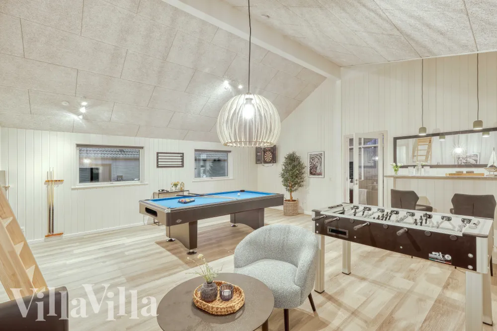 Ved ankomst til huset, bliver I mødt af det store aktivitetsrum, hvor underholdningen aldrig stopper. Udfordr hinanden i billard, dart, bordfodbold og bordtennis, mens I nyder en forfriskning fra den private bar. Her er der plads til leg og sjov for både store og små.