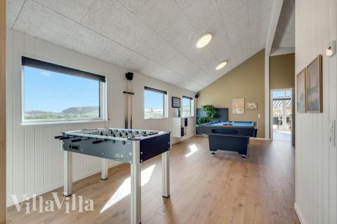 Det sjove stopper ikke her - men fortsætter derimod i sommerhusets aktivitetsrum. Her kan I dyste i billard eller bordtennis på det kombinerede bord eller tage en dyst i dart eller bordfodbold. Vil man hellere agere tilskuer, kan dette gøres i rummets bar, hvor en kølig forfriskning kan nydes.
