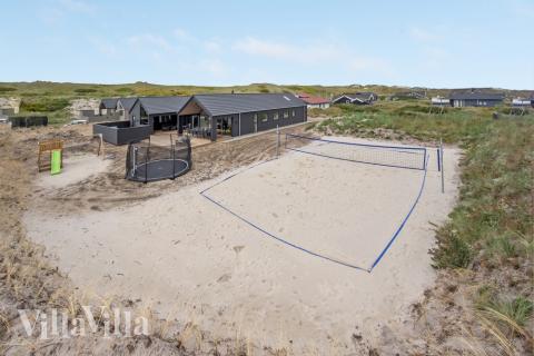 Som prikken over i’et kan i afslutte dagen med en familiedyst på sommerhusets helt egen volleybane, som ligger placeret i forlængelse af have og terrasse.