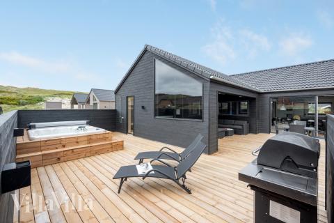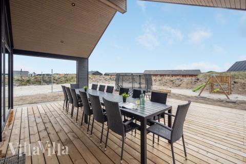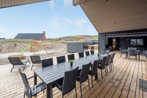 Nær Hvide Sande, nærmere bestemt i Bjerregård, finder I dette velindrettede sommerhus til 18 personer. Med placering i klitlandskabet og en kort køretur fra fiskerbyen Hvide Sande, er feriestemningen en garanti. Turen til Hvide Sande kan tilbagelægges på cykel af hyggelige cykelstier i klitterne. Inde i sommerhuset er der tillige skruet fuldt op for hygge og kvalitet, for ikke at glemme de mange aktiviteter på sommerhusets udendørs arealer.