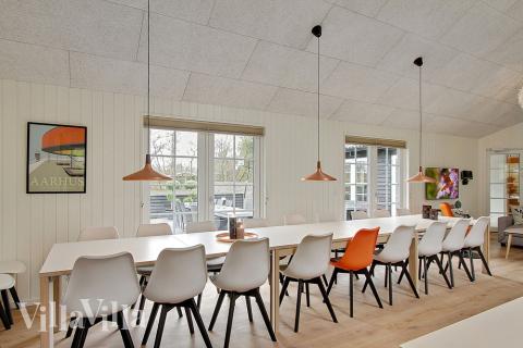 Velkommen til dette i Blåvand centralt beliggende poolhus fyldt med spændende detaljer og aktivitetsmuligheder. Husets eget badeland indbyder til timers badesjov og svømning med poolen på 20 m2 med modstrømsanlæg, romersk trappe og vandrutsjebane. Er det rent velvære, som ønskes, så lokker husets store spabad og sauna til afslappende stunder. Det store opholdsrum, med udgang til terrassen, er husets naturlige samlingspunkt med sofagruppe, spisepladser og køkken. Køkkenet er praktisk indrettet med køkken-ø, og dobbelt opvaskemaskine, vask, ovn, køleskab og kogeplader,... Læs mere