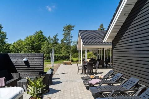 Er vejret til det, er der fra husets køkkenalrum direkte udgang til sommerhusets lækre terrasse. Her finder I god spiseplads og mulighed for at tilberede måltider på sommerhusets gasgrill. Mens der grilles, kan børnene lege i legetårnet eller tage en tur på den nedgravede trampolin.