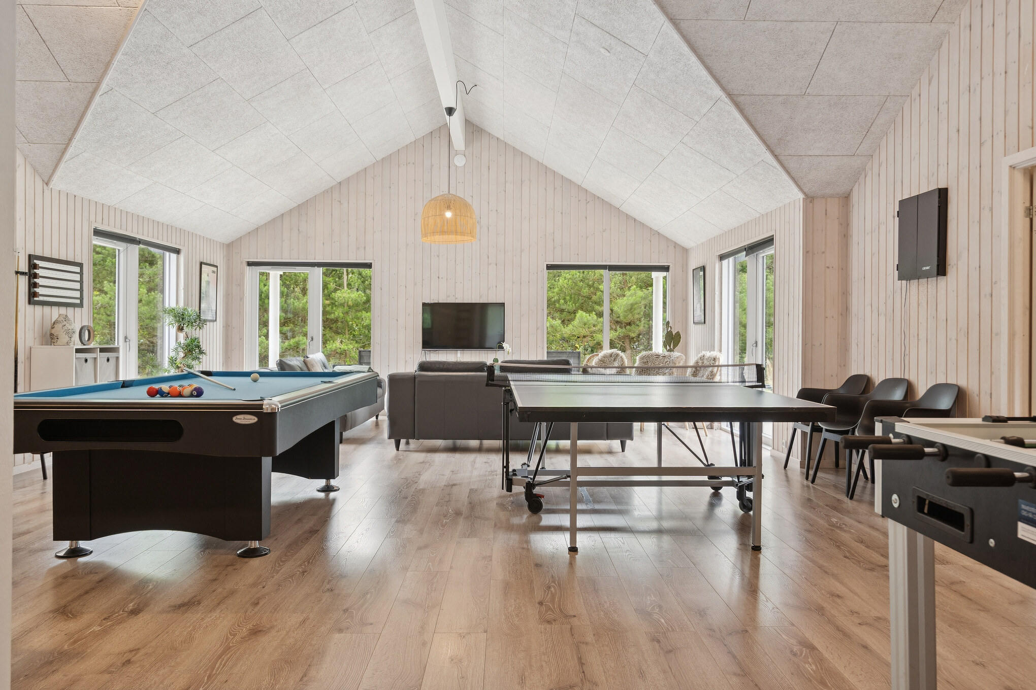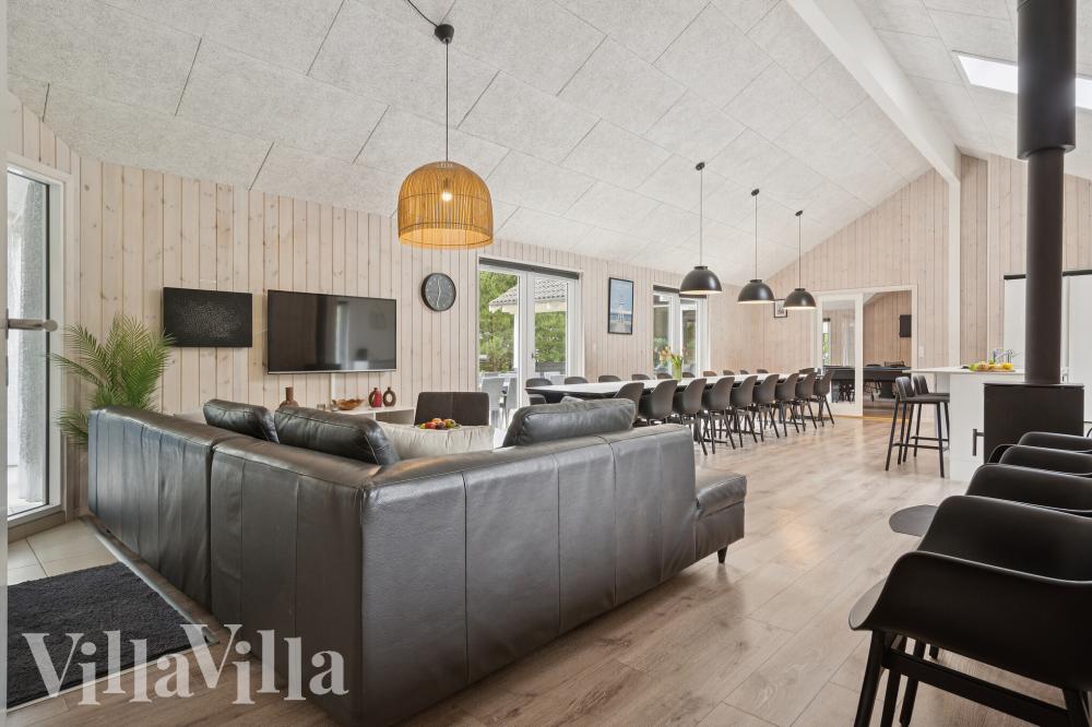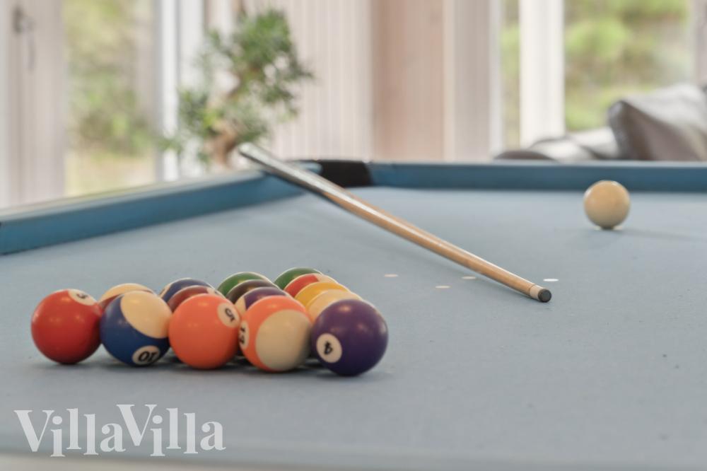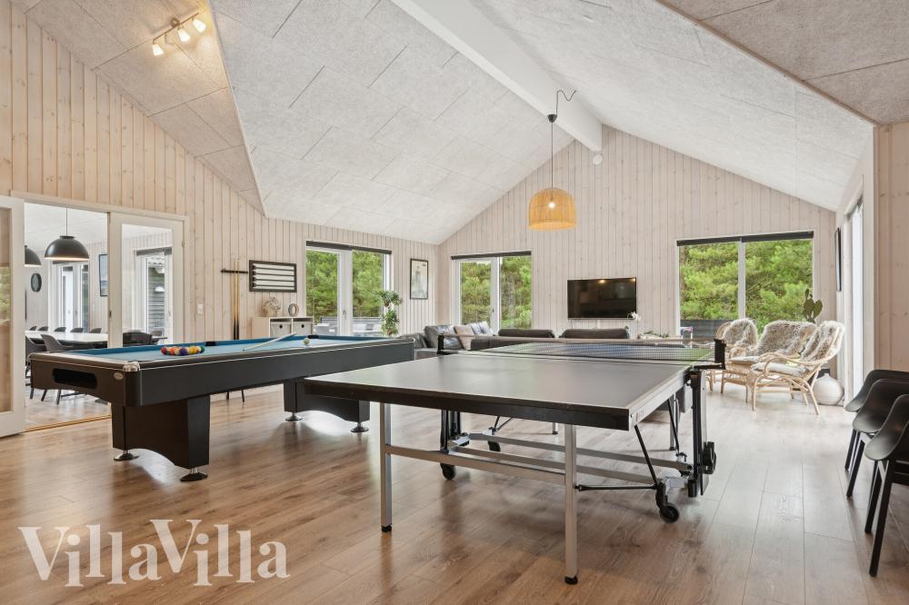 I dette sommerhuse kommer ingen gæster til at kede sig. Sommerhuset er nemlig udstyret med et stort aktivitetsrum, hvor der kan spilles bordfodbold, billard, bordtennis, PlayStation 4 og dart. Det er også her, at I finder sommerhusets egen bar med tilhørende køleskab, hvorfra der kan serveres kolde drikke til de spillende.