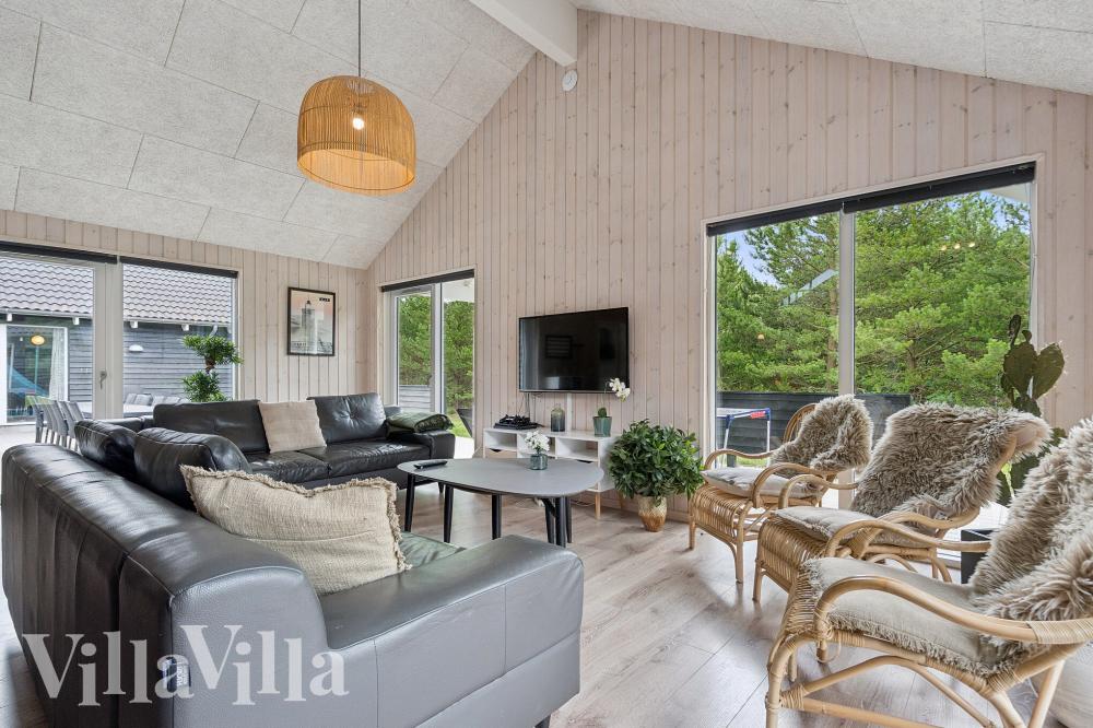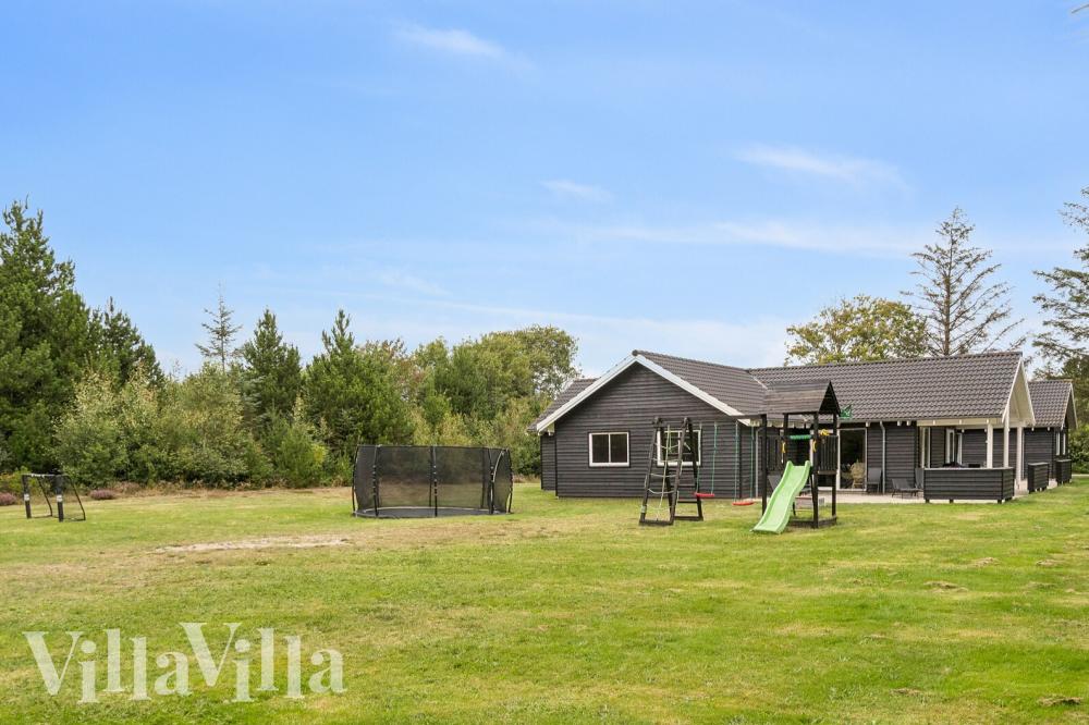I den populære og hyggelige ferieby, Henne, ligger dette velindrettede Skanlux-sommerhus, som er bygget med flotte detaljer og god plads. Den flotte sandstrand ligger kun en kort køretur fra sommerhuset. Sommerhuset har plads til 24 overnattende gæster, som kan benytte sig af sommerhuset mange aktivitetsmuligheder. I sommerhusets dejlige wellness-afdeling finder I både en 20 m2 stor indendørs swimmingpool med vandrutsjebane og romersk trappe, et boblende spabad og en varm sauna. I dette sommerhuse kommer ingen gæster til at kede sig.... Læs mere