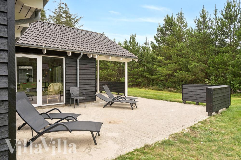 Tænd op i grillen og nyd den danske sommer i gode havemøbler på sommerhusets delvist overdækkede terrasse. Sommerhuset ligger på en stor grund, smukt omkranset af træer, som giver god plads og privatliv. I haven er der gynger, sandkasse og legestativ til de mindste gæster. Som prikken over i’et ligger huset som nabo til en af Vestkystens bedste golfbaner. Her kan gæsterne frit spille på den hyggelige 9-hullers par 3 bane, og har I ikke eget udstyr, kan det nemt lejes i Proshoppen.