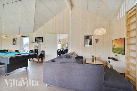 Sommerhuset er ideelt til flere familier eller en stor gruppe, som ønsker at holde ferie eller weekend i samme hus. Her er nemlig god plads til udfoldelse og flere store rum, så man kan dele sig op og lave lige præcis det, man har lyst til. I det store aktivitetsrum kan der eksempelvis spilles og dystes dagen lang. Her finder I både billard, bordtennis, bordfodbold og dart. I kan også tage et spil Play Station 4 eller slænge jer i feriehusets bar.