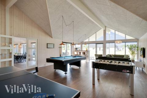 I sommerhusets ene ende finder I et stort og lyst aktivitetsrum med mange forskellige faciliteter; billard, bordtennis, dart og bordfodbold. Her er desuden en bar i hjørnet og en sofakrog med fjernsyn og PlayStation 5. Sommerhuset har 4 TV med chromecast; 2 stk 50" og 2 stk. 75".