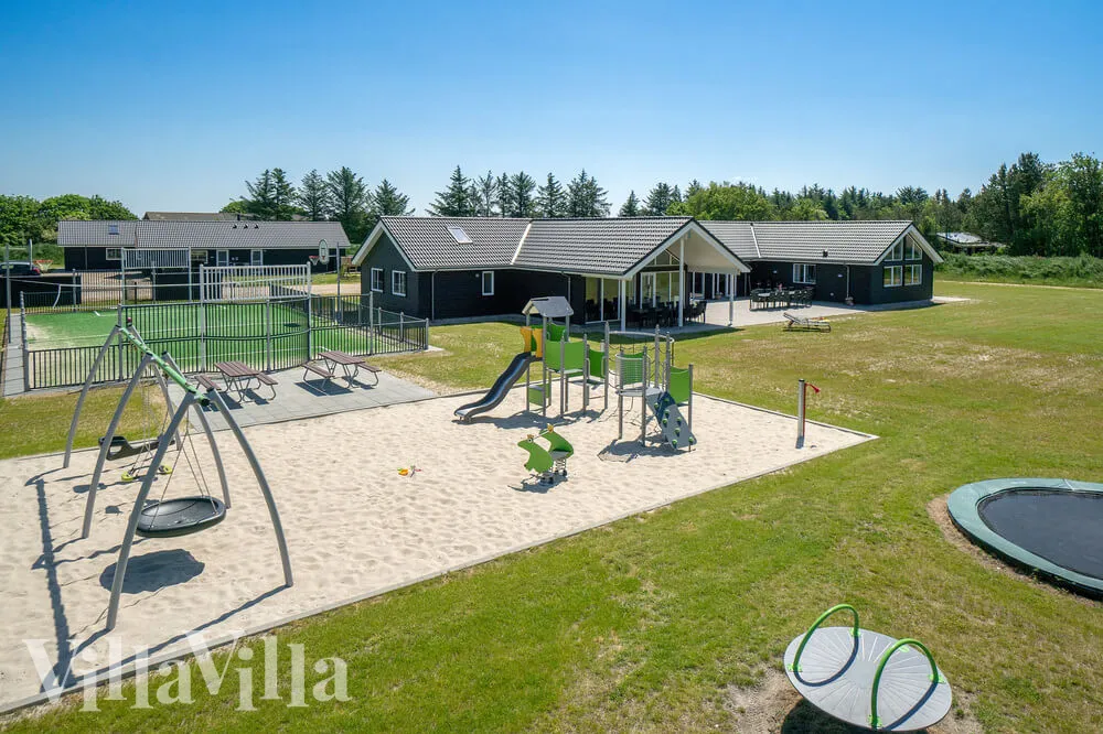 Sommerhuset har et stort udendørs legeareal og multibane, som deles med nabohusets gæster. Her er der noget for legebørn i alle aldre. Alt fra gyngestativer, legetårn med rutsjebaner og klatrestativ til den store multibane. Multibanen er belagt med kunstgræs og kan bruges til både fodbold, basketball, fodtennis, volley og badminton.