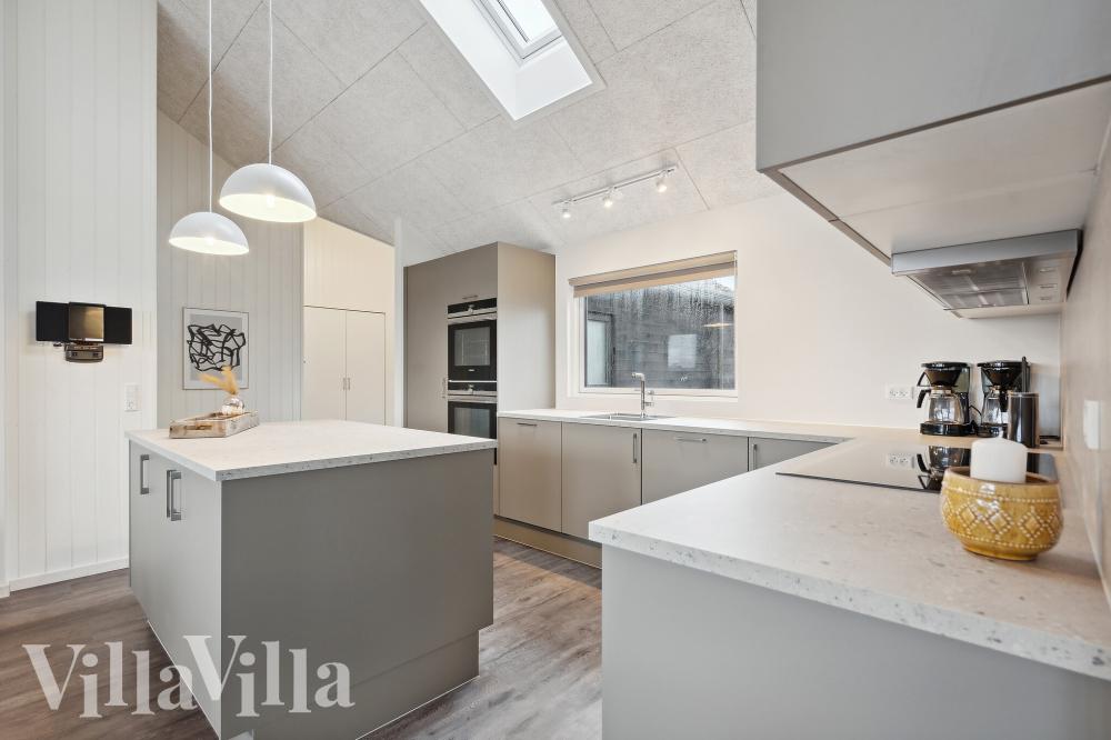 Det 18-personers Sammenhus™ byder på 7 soveværelser, 2 hemse med i alt 4 sovepladser og 3 badeværelser – perfekt til både familier og vennegrupper. Det store opholdsrum er husets naturlige samlingspunkt med en hyggelig brændeovn, komfortabel sofagruppe og et langt spisebord, hvor alle kan samles til måltider eller spil. Det moderne XL-køkken er fuldt udstyret med alt, hvad I behøver – bl.a. 2 opvaskemaskiner og 2 ovne, så madlavningen bliver en fælles fornøjelse.