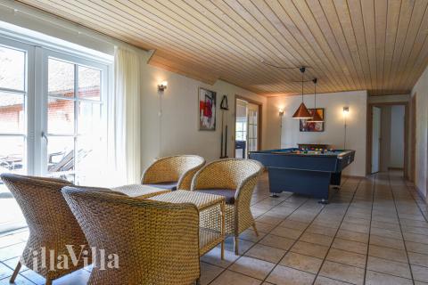 Dette dejlige poolhus er opført i den idylliske Klitgårdsstil, som er typisk for egnen. Den flotte poolafdeling med 25 m2 stor swimmingpool med modstrømsanlæg, vandrutsjebane og stor indbygget spabad skal opleves. Køkkenet, der er forbundet med en stor spisestue og opholdstue med brændeovn, er komfortabelt indrettet med rigelig plads til 24 personer. I aktivitetsrummet finder I et velassorteret udbud af aktivitetsmuligheder, såsom airhockey, billard, bordtennis, Playstation 2 og fodboldspil. I stuen er indrettet en hyggelig bar, hvor der kan mikses... Læs mere